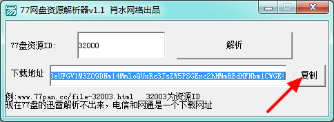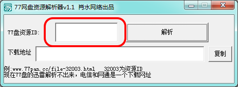 1、打开77网盘资源解析器,输入77资源ID(如:www.77pan.cc/file-32000.html 32000即为资源ID )