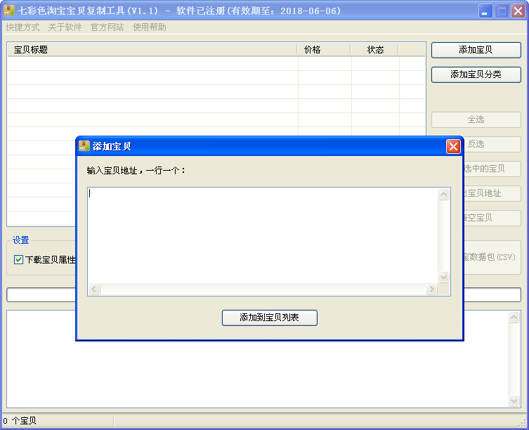 可以下载淘宝、天猫店里的宝贝,可以一次添加多个宝贝地址进行批量下载宝贝、复制宝贝。
