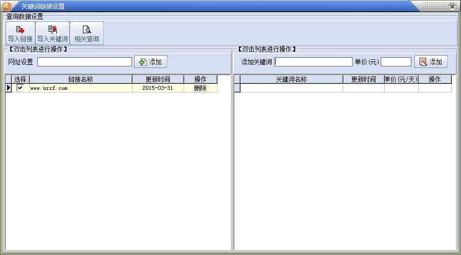 3、批量添加关键词和链接可以通过,“导入链接”,“导入关键词”两个按钮实现,导入载体为文本文档。