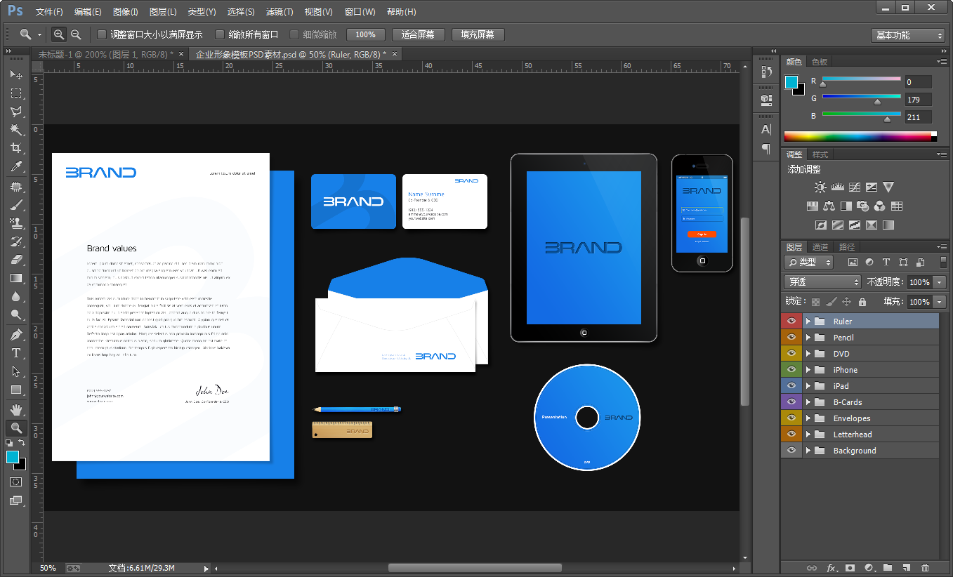 该企业形象模板PSD分层素材以白蓝黑三种颜色为主设计元素,其中所囊括的内容也比较多,包括iPhone、iPad等,如果你需要一份企业形象设计模板,不妨参考一下该企业形象模板PSD分层素材,有需要的朋友点击本文下方相应的下载地址进行下载即可对该PSD分层素材中的任一内容进行选取编辑,欢迎下载使用!