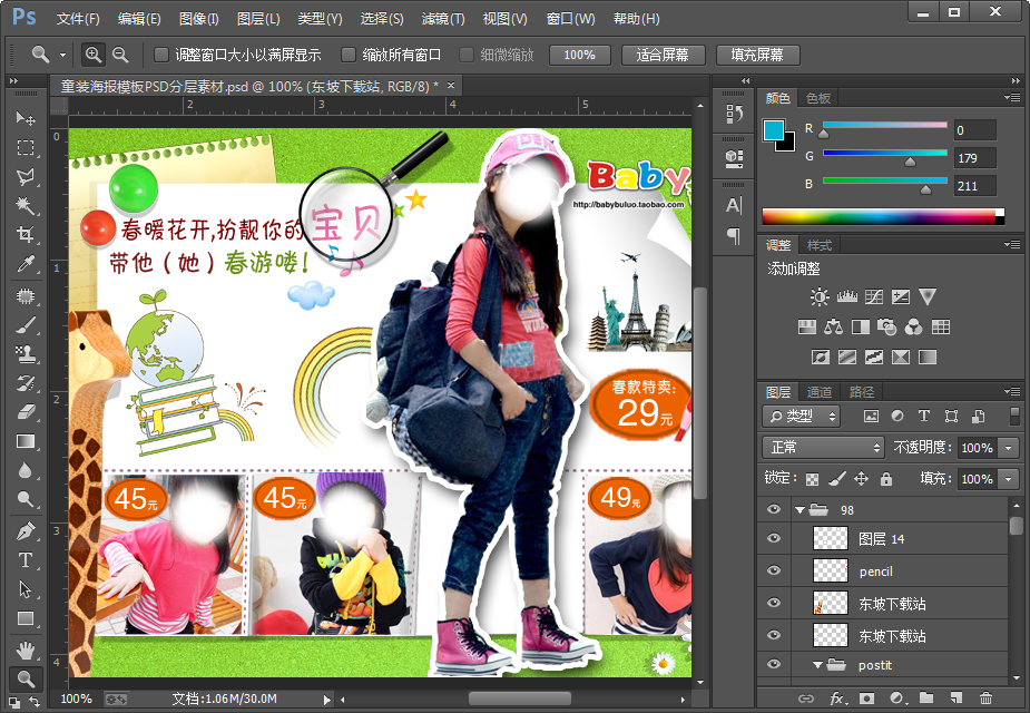 “春暖花开,扮靓你的宝贝,带他(她)春游喽!”——本节内容小编为大家精选带来的是淘宝童装素材之春款童装促销海报模板PSD分层素材,该素材为免费版,如果你需要一份设计一款春季童装促销海报,那么希望这份春款童装促销海报模板PSD分层素材能为你提供些许帮助!欢迎有需要的朋友下载使用!