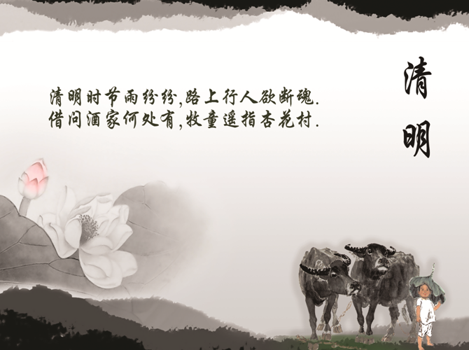 大家还记得清明古诗中牧童和水牛吧,现在有很多人将这些元素放在ppt模板里。下面小编给大家分享的是清明节ppt模板,具体是水墨画牧童水牛背景清明节ppt模板,如果您需要清明节ppt背景素材,或者想找一些清明节主题的水墨ppt模板,可以免费下载此文档哦。