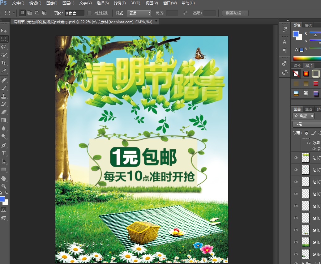 清明节1元包邮促销海报psd素材