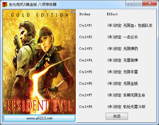 生化危机5黄金版八项修改器为中文版,直接免去了看英文对照修改的问题,简单易用。该修改器包含了无限血、一击必杀、无限金钱、车辆无限生命等八项功能,帮助你轻松闯关,虐杀恶心的僵尸。欢迎下载!
