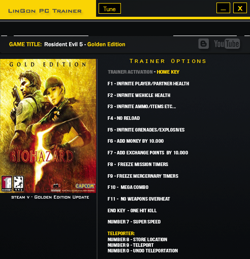 生化危机5黄金版十五项修改器功能介绍