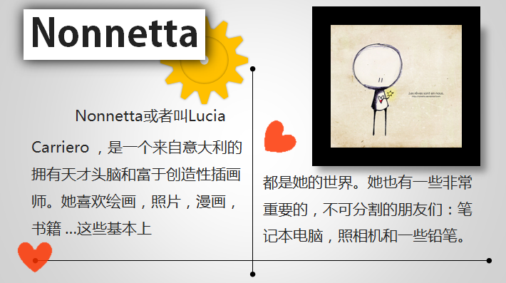 nonnetta是以为天才插画家,她设计的作品简单却不失韵味,下面的这个插画ppt模板详细介绍的nonnetta插画作品,通过鉴赏它们,让更多的人了解nonnetta这种创作风格。接下来一起来看看木偶齿轮卡通插画ppt模板,pptx格式,共19页,如果您想找插画类的卡通ppt模板,那么这个文档将是你一个不错的选择。