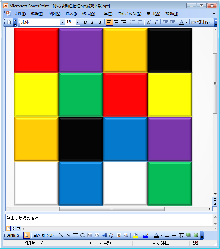 不少朋友对于记忆类游戏都有着浓厚的兴趣,因为觉得这类游戏非常有益于锻炼记忆力,本节内容小编为大家带来的也是一款记忆游戏,不过是以ppt的形式展现的,如果你想看看你的记性如何,或者想要考验一下你的大脑年龄,那么不妨来玩玩这款小方块颜色记忆ppt游戏吧!欢迎有需要的朋友下载把玩这份动态小方块颜色记忆ppt游戏哦!