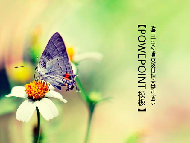 简约清爽蝴蝶采花ppt模板