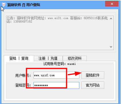 3、这时就会看到已经破解的字样(如果你破解之后还不能进行登陆,可以用maomi这个试用账号)
