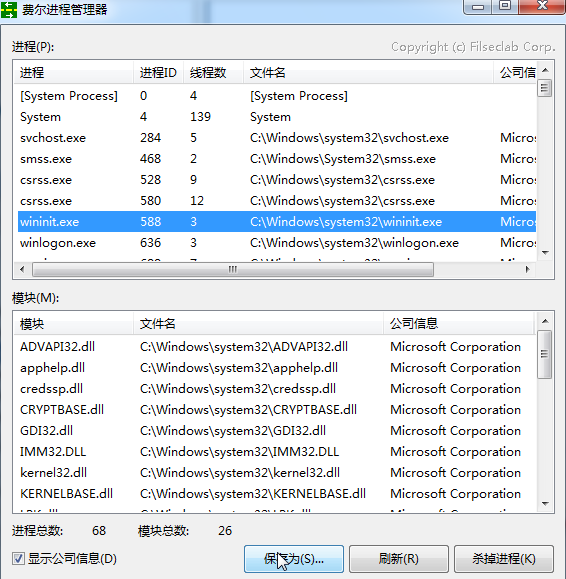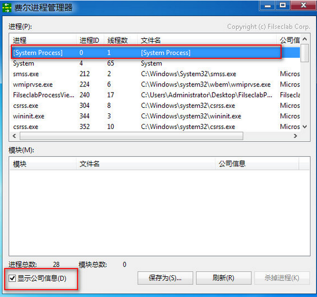 虽然自己的电脑也有自带的进程管理器,但是都没有费尔进程管理器好用,因为它多出了能够一键显示公司信息与重要进行信息快速保存的功能。而且操作也非常简单,喜欢的就赶紧带走吧!