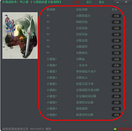 轩辕剑外传穹之扉十七项修改器使用方法