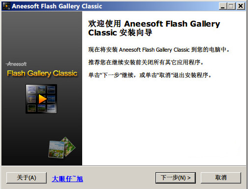 下载完成后,解压文件,运行“Aneesoft Flash Gallery Classic.exe” 这个文件,按照提示点下一步