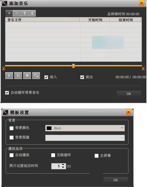 2、选择模版:有简约、拼贴和主题三种类型的模版,可根据自己的需要选择,简单实用的此外还可以添加音乐和设置模版
