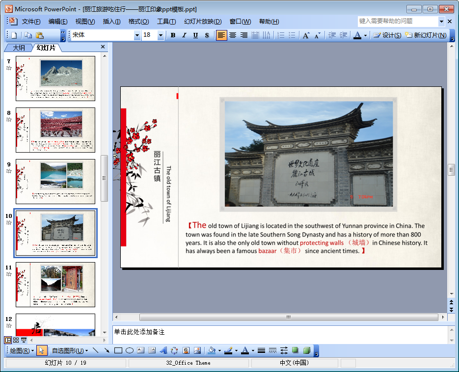 话说清明节过去了,五一劳动节还会远吗?——问题来了,五一劳动节怎么过——除了搁家呆着捱过之外,当然要出去玩耍一下啦!那么五一去哪儿玩耍呢?不知丽江何如呢?嘿!说了这么多,不如来看看小编为你整理的这份免费的关于介绍丽江的ppt吧!该丽江印象ppt模板共有19页,详细介绍了丽江旅游吃住行等相关问题,如果你想对云南丽江有进一步的了解,那么这份丽江旅游吃住行ppt介绍一定会对你有所帮助的!欢迎下载查阅哦!