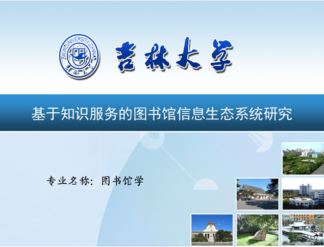 吉林大学位于吉林省省会长春,是教育部直属全国重点综合性大学。现在是4月份,不知道小伙伴们的毕业论文准备的怎么样了,这里小编分享的是吉林大学图书馆信息生态系统研究ppt,具体名称是基于知识服务的图书馆信息生态系统研究,可以给图书馆学专业的同学作为参考。