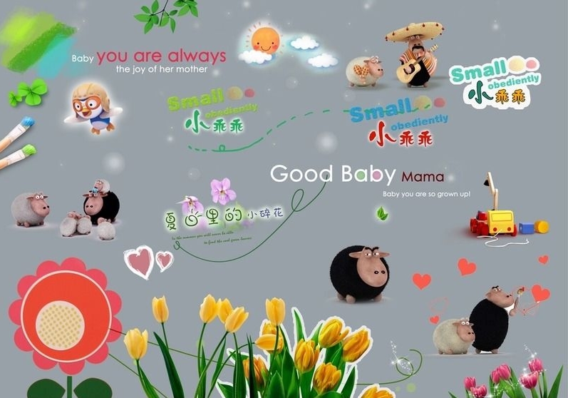 我们在制作一些照片图片时,常常会需要一些可爱卡通的素材来点缀图片,这里小编分享的是可爱卡通中英文psd素材,有太阳花、郁金香、小绵羊、太阳、玩具火车等素材,适合制作与可爱相关主题的图片。