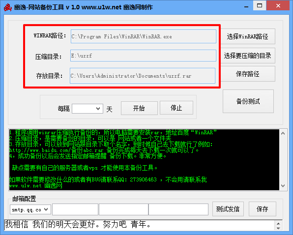 1.程序调用winrar压缩执行备份的,所以电脑需要安装rar