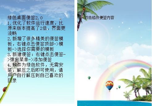 1、打开绿色桌面便签,软件会有2个便签显示在你的桌面上,可自行调整,都可进行记录