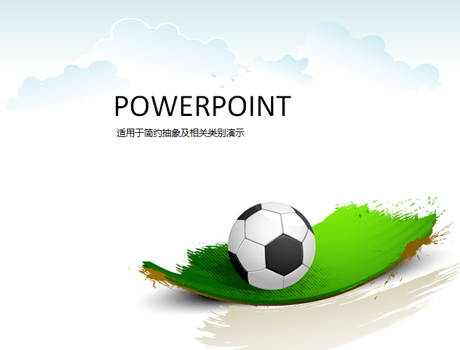 足球是一种很常见的体育运动,同样也是考验退队的配合。不过今天小编想和大家分享的是一个体育ppt模板,绿色草地足球背景ppt模板,非常简洁时尚,如果您需要一些足球ppt背景,或者想制作一些体育ppt课件,那赶紧下载使用此文档吧。