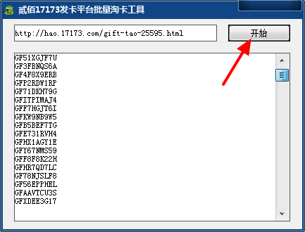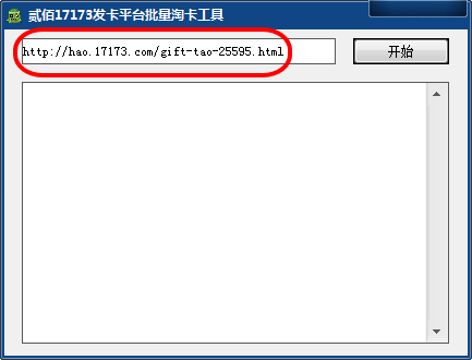 1、打开贰佰17173发卡平台批量淘卡工具,在编辑框内粘贴淘号地址