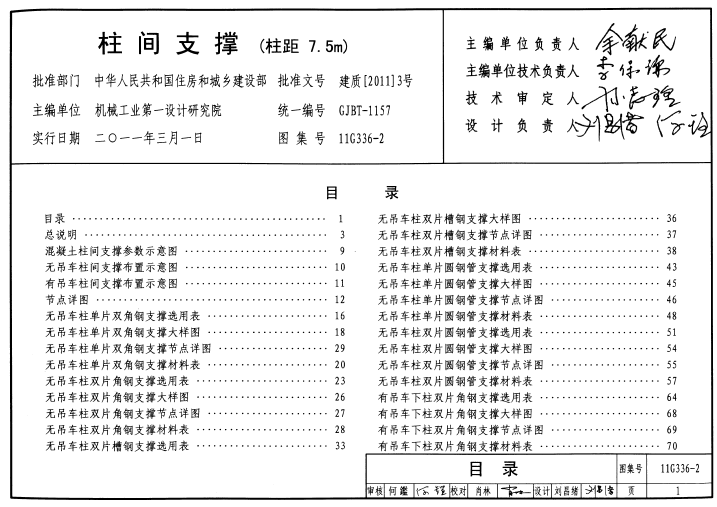 11G336-2柱间支撑(柱距7.5米)图集样张