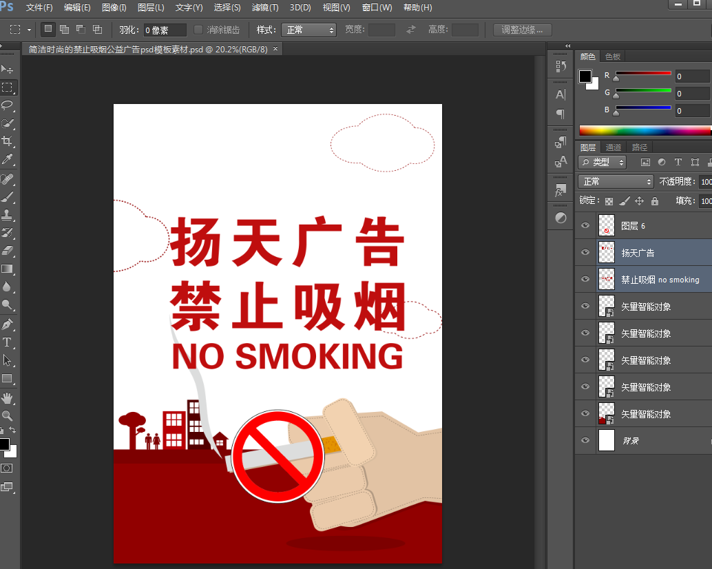 简洁时尚的禁止吸烟公益广告psd模板素材