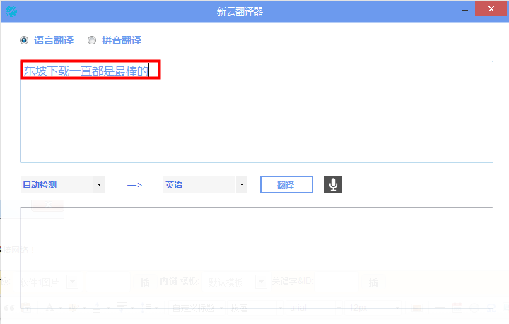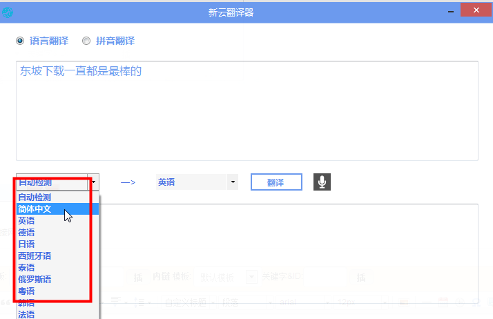 2、输入需要翻译的内容,软件会自动检测语言类型;