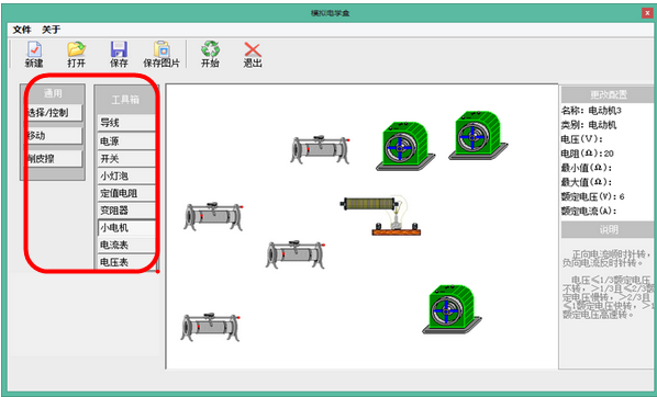 模拟电学盒能象真实实验一样随意连接试验元件和导线,有领先的画标准电路图功能,是中学电路教学与学习的好工具,能增强中学生学习兴趣和效率,也可用于幼儿启蒙教育或作益智游戏。