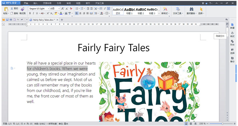 WPS Office 2013的文字程序具备了更强大的管理能力。提供开放格式查找API接口,表格尺寸的记忆等功能。