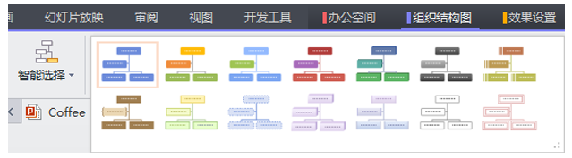 WPS Office 2013 的演示程序,新增了组织架构图工具。 您可以轻松插入常用的架构图,并对图形进行编辑。