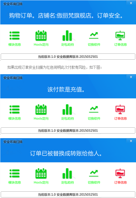 支持付款时安全扫描。防止远程付款木马等程序
