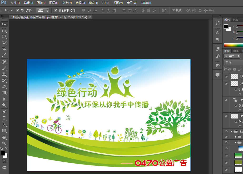 动感绿色骑行环保广告设计psd素材