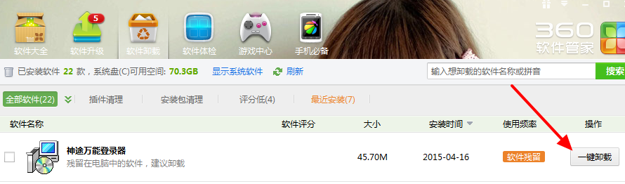 打开360软件管家,直接点击【一键卸载】即可