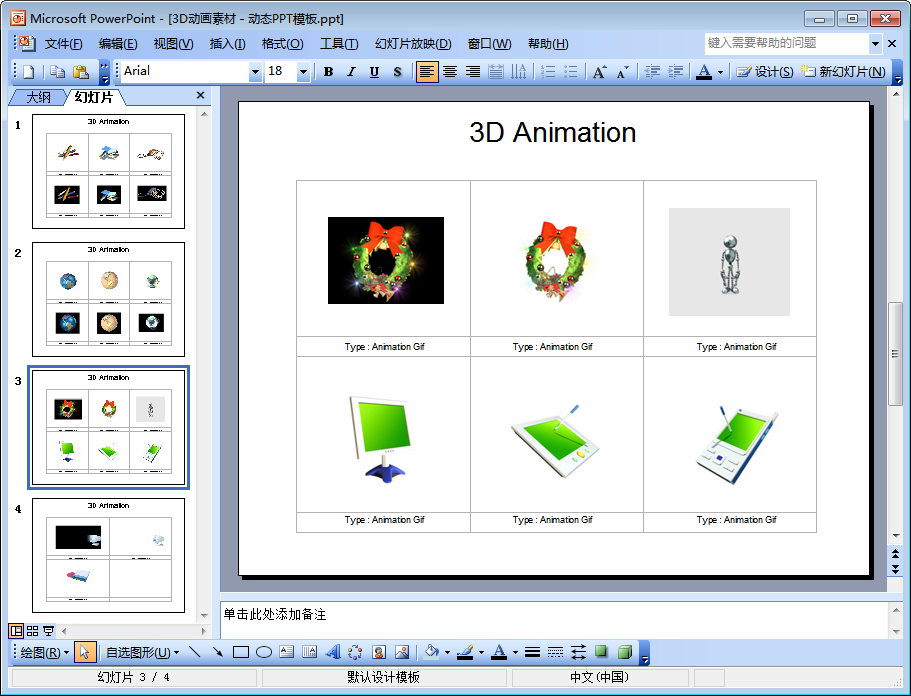 该ppt动态素材之3D动画素材共有4页,含有多种图标样式,如动态铅笔,旋转地球,动态金属机器人,动态圣诞节等素材,素材高清免费,具有实用性,有需要的朋友只需点击本文下方相应的下载地址进行下载即可。