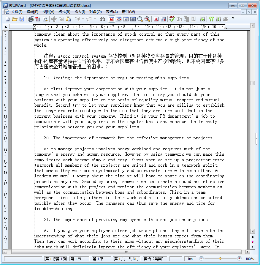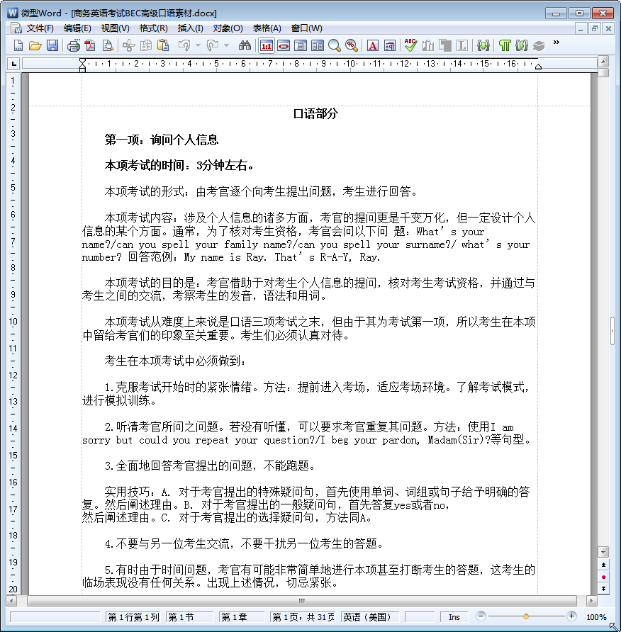 BEC,全称为BUSINESS ENGLISH CERTIFICATE,指的是剑桥商务英语资格考试。本节内容小编为大家精选带来的是一份不错的bec商务英语资料——商务英语考试BEC高级口语素材,该资料为完全免费版,有需要的朋友可以下载使用。