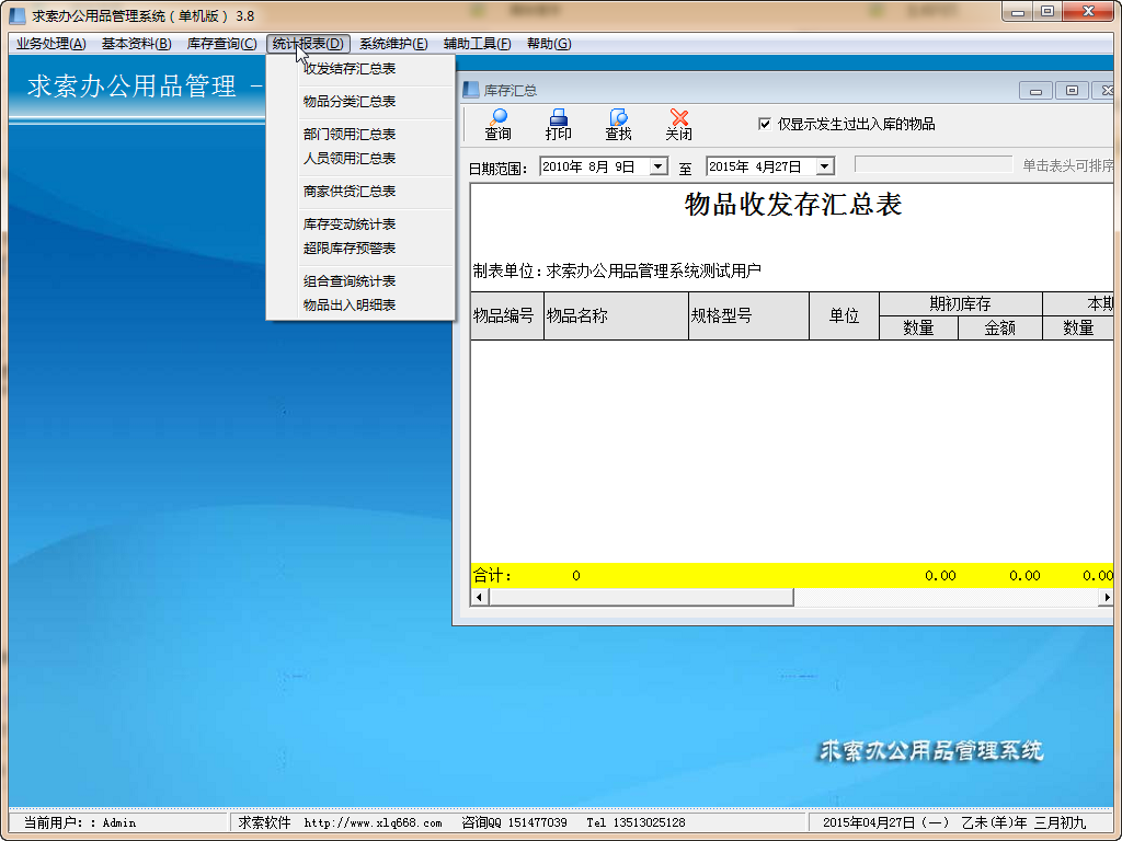 求索办公用品管理系统破解版是一款主要针对各种库存管理的办公软件,对于各种规模比较大的公司,各种办公用品需要合理的进行管理,为了避免各种重复购买和闲置的情况出现,一款好用的办公用品管理软件是必不可少的。