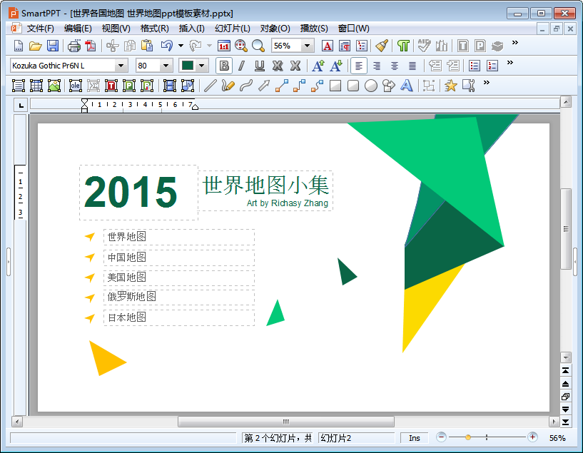 世界地图ppt素材是经常会用到的ppt素材之一,但是要找到好用又没水印的世界地图ppt素材似乎不是一件简单的事情,那怎么办呢?如果你正需要世界各国地图ppt模板素材“救急”,那么不妨来看看这份高清无水印版世界各国地图ppt模板素材吧!该世界地图ppt素材为完全免费版,内含世界地图、中国地图、美国地图、俄罗斯地图、日本地图等世界各国地图形状,有需要的朋友们快来下载吧!