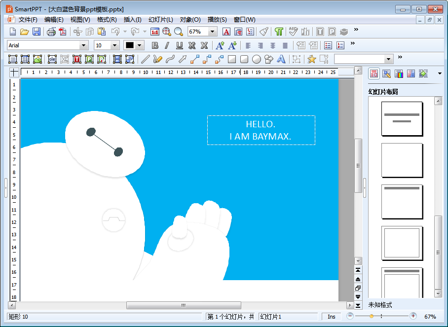 “Hello I am Baymax”——还记得《超能陆战队》中大白的这句经典台词吗?据有关消息报道,《超能陆战队2》日前正在筹划中哦!怎么样?是不是想想都觉得有些小激动呢?本节内容小编为大家精选带来的是大白蓝色背景ppt模板,注意看哦!在这份大白ppt素材中可是有“Hello I am Baymax”的字样的哦!小编觉得这份大白蓝色背景ppt模板挺适合做自我介绍时使用的,你觉得呢?有需要的朋友快来下载吧!