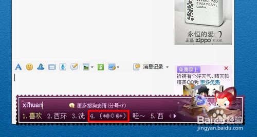 通过输入法有时候能够直接显示对应词语的颜文字,节省很多时间。例如:输入“xihuan(喜欢)”对应的颜文字就会在结果中显示,直接输入即可。