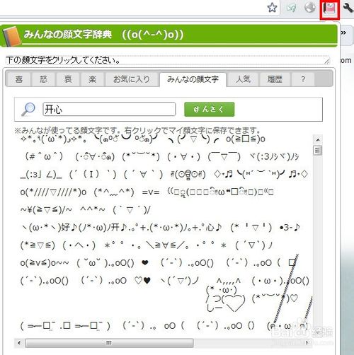 如果你使用的是谷歌浏览器,就可以安装“颜文字词典”插件,在插件中能够直接对颜文字搜索获得自己想要的颜文字。(插件很强大很好用,比较推荐这种方式)