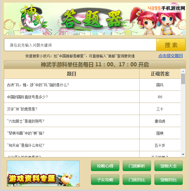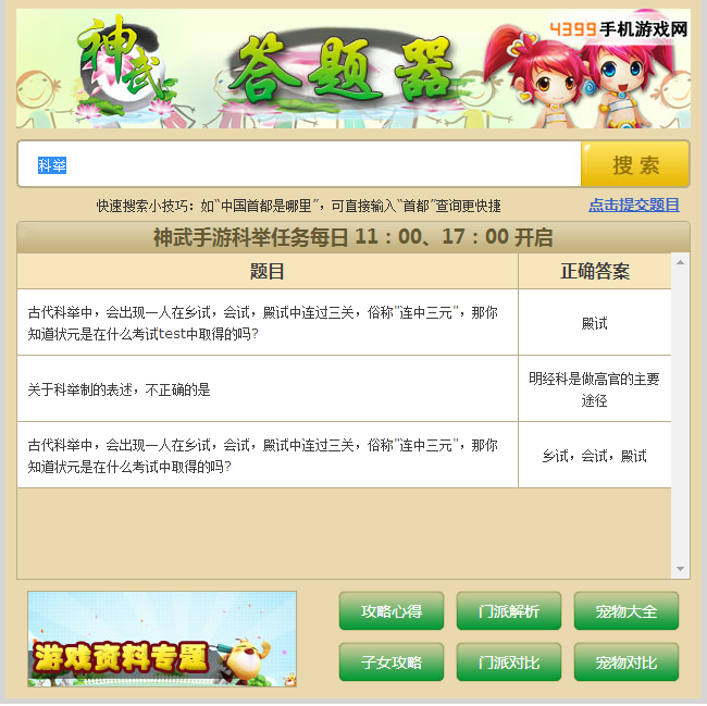 神武手游答案部分展示