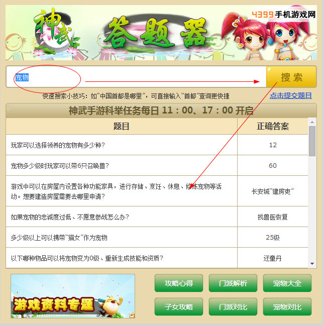 2、如搜索‘宠物’就会出现宠物相关的答案!