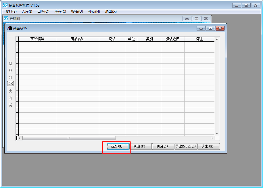 单击【资料】——“期初录入”——“库存商品期初录入”菜单中录入各仓库库存商品,商品初始化录入把商品数量、单价,添加到仓库中。