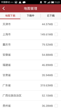 由于地图数据比较大,建议使用WIFI网络下载城市数据。