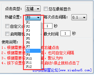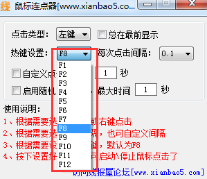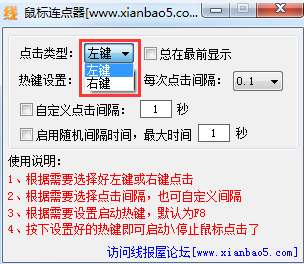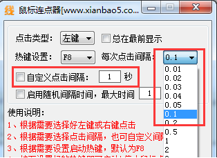 点击间隔可选择使用软件自带的间隔时间也可自定义设置
