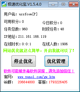 完全免费的网站优化软件,没有任何的功能限制。软件占用内存极小,运行稳定安全。全新的自动升级保证软件与搜索引擎算法实时同步,快速提升网站关键词排名,保证网站优化最佳效果。