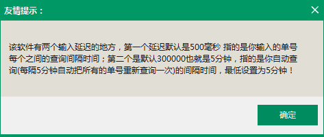 3.右键保存历史查询记录功能是大家所要求的保存历史单号功能,大家点击后会自动保存当前查询的单号信息,下次启动软件会提示你是否导入历史单号4.可以删除历史查询记录(把文件夹中的history.txt给删除掉)5.新增重新查询按键(如果大家查询后想刷新的话,不需要重新输入单号或导入,直接点击即可重新查询)6.增加备注功能,也是应大家的要求(备注功能 需要配合保存历史查询记录功能来使用,添加好各单号的备注后,点击保存历史查询记录,然后下次启动会如果选导入历史单号的话会把备注一起显示出来的)7.增加限制:如果正在查询中的话,软件不允许关闭,因为关闭后会导致线程结束不了。会卡8.增加自动查询功能,可以设置间隔时间,全自动查询!