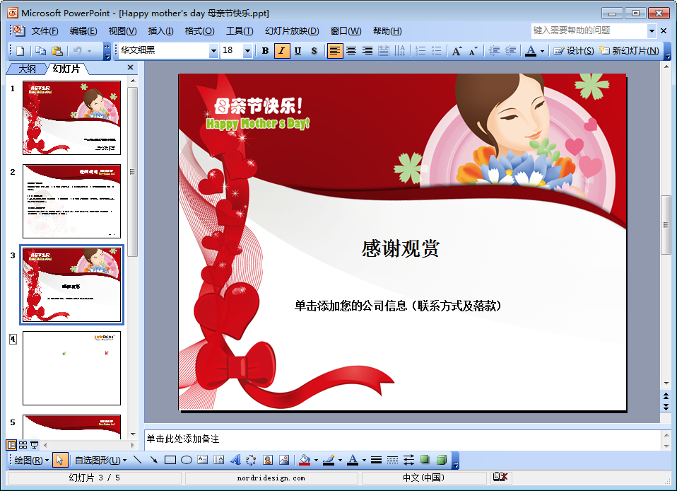 这是一份就母亲节而专门推出的一款ppt模板——带有“母亲节快乐(happy mother's day)”字样的ppt模板,如果你需要下载一份母亲节ppt模板进行使用的话,小编觉得这份带母亲节快乐字样PPT模板将会是一个不错的选择哦!欢迎有需要的朋友下载使用!