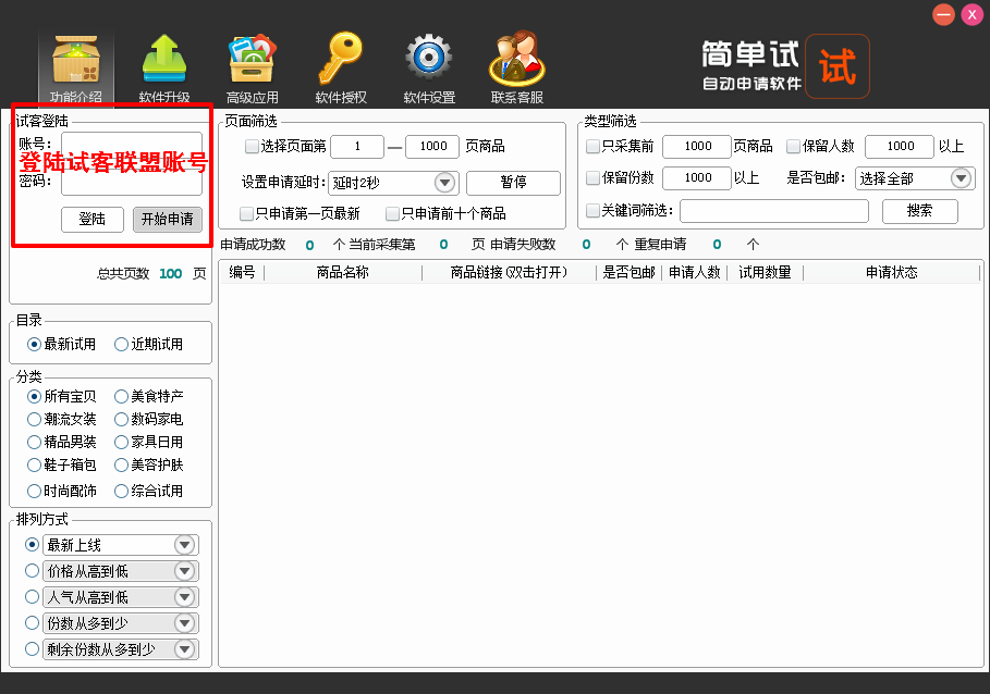 使用试客联盟申请工具急速版,申请成功率百分之百。而且每天可以免费神器20个试用,欢迎下载体验!