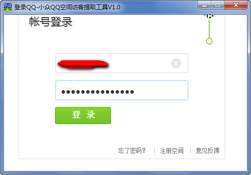 下载解压软件后,打开“小众QQ空间访客提取工具V1.0.exe”文件,会出现如下图的界面,登录qq号码。